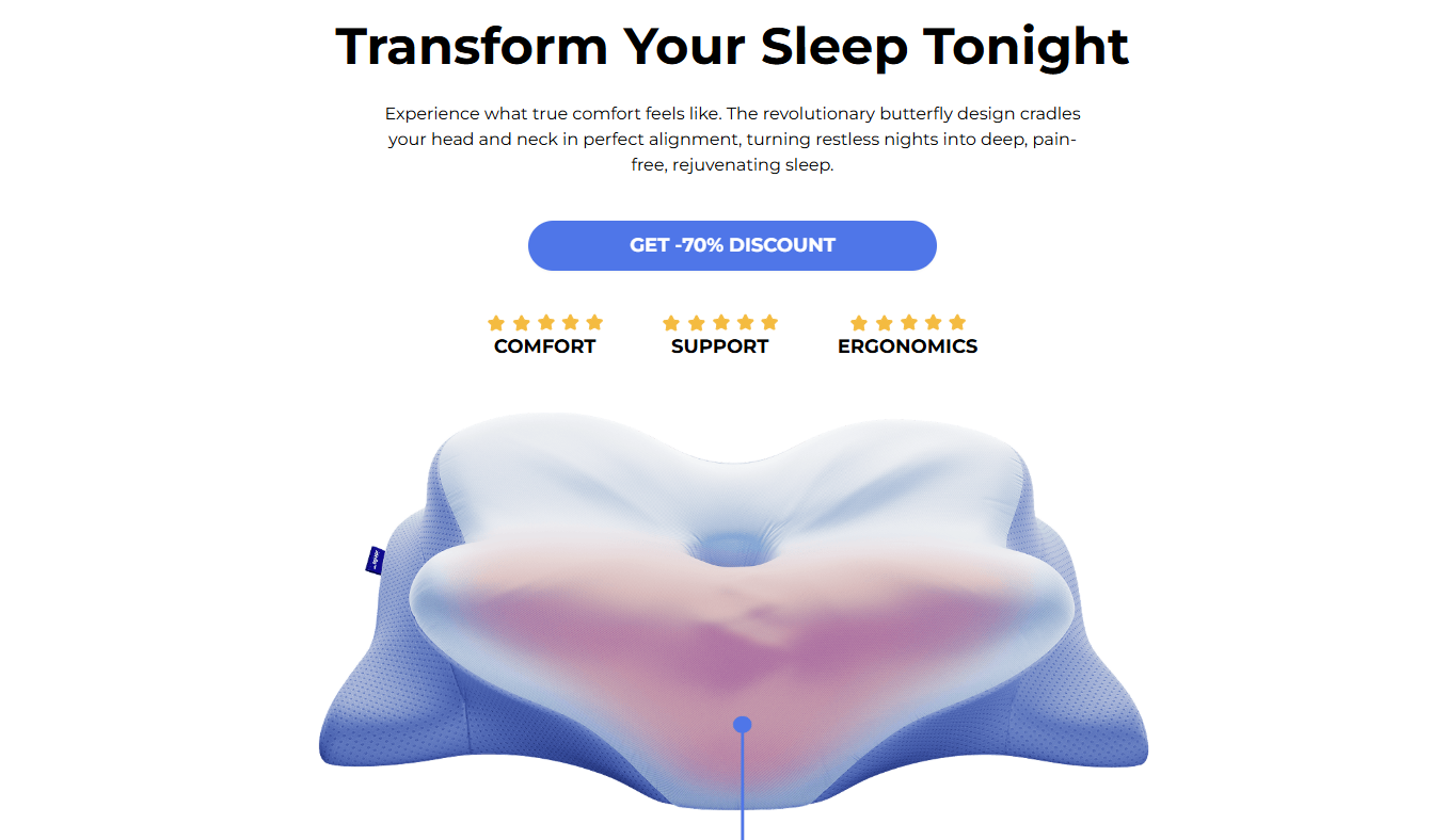 This pillow is marketed as a solution for people suffering from neck stiffness, poor posture, and restless sleep.