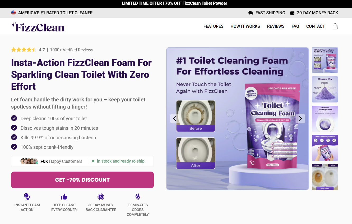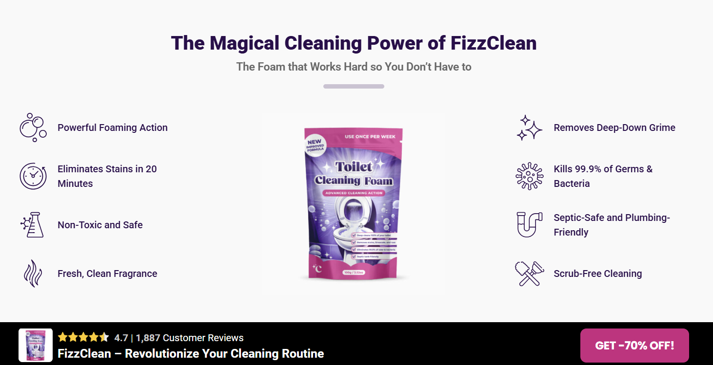 FizzClean Toilet Cleaning Foam represents a new standard in bathroom hygiene. With its advanced foaming technology, powerful cleaning action, and effortless application, it transforms one of the most tedious household tasks into a quick and effective routine.